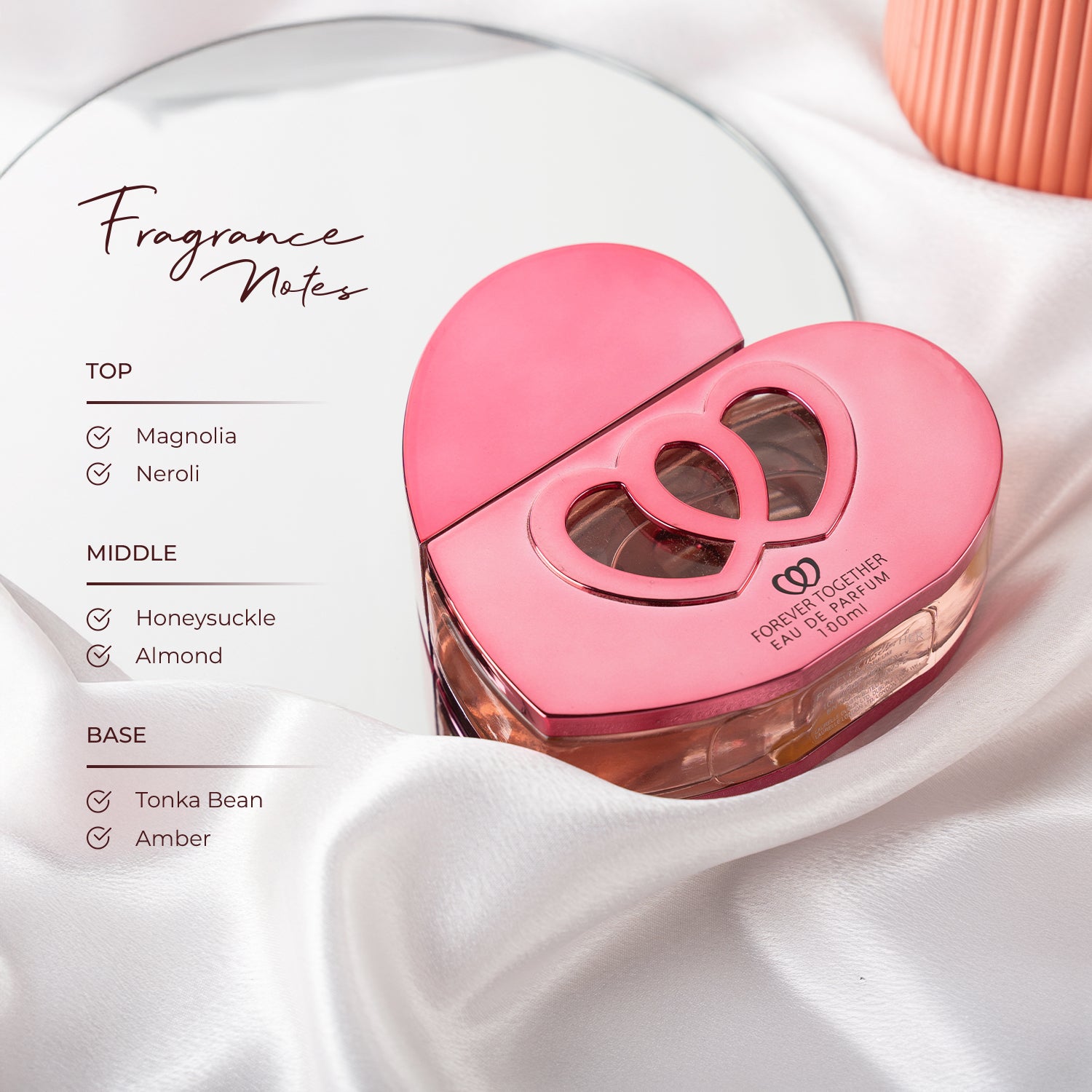 You can get forever together to feel refreshed and smell heavenly. This long-lasting perfume combines notes of magnolia, almond, and amber that awaken your senses and make you smell fresh and floral all day and night long. It is a fragrance that will ignite a feeling to last for eternity.