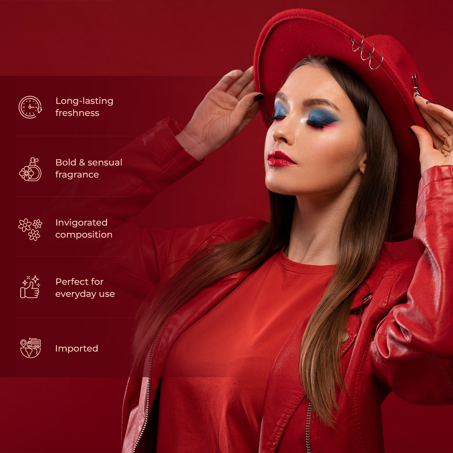 This refreshing women's perfume has a delicious and captivating combination of orange blossom, Turkish rose, jasmine, and vanilla, culminating in a sweet floral scent that lingers on your skin for hours. Its long-lasting formula wraps you in freshness and elegance. Notes How to use it? |
