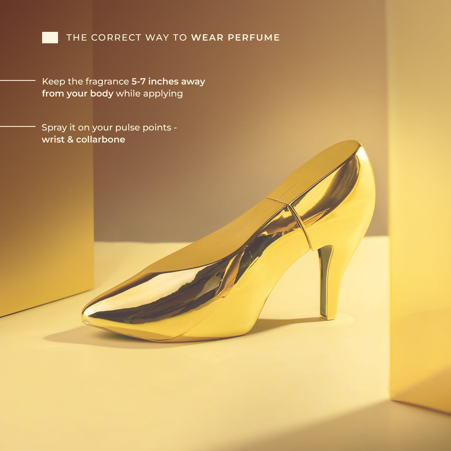 - Keep the fragrance 5-7 inches away from your body while applying