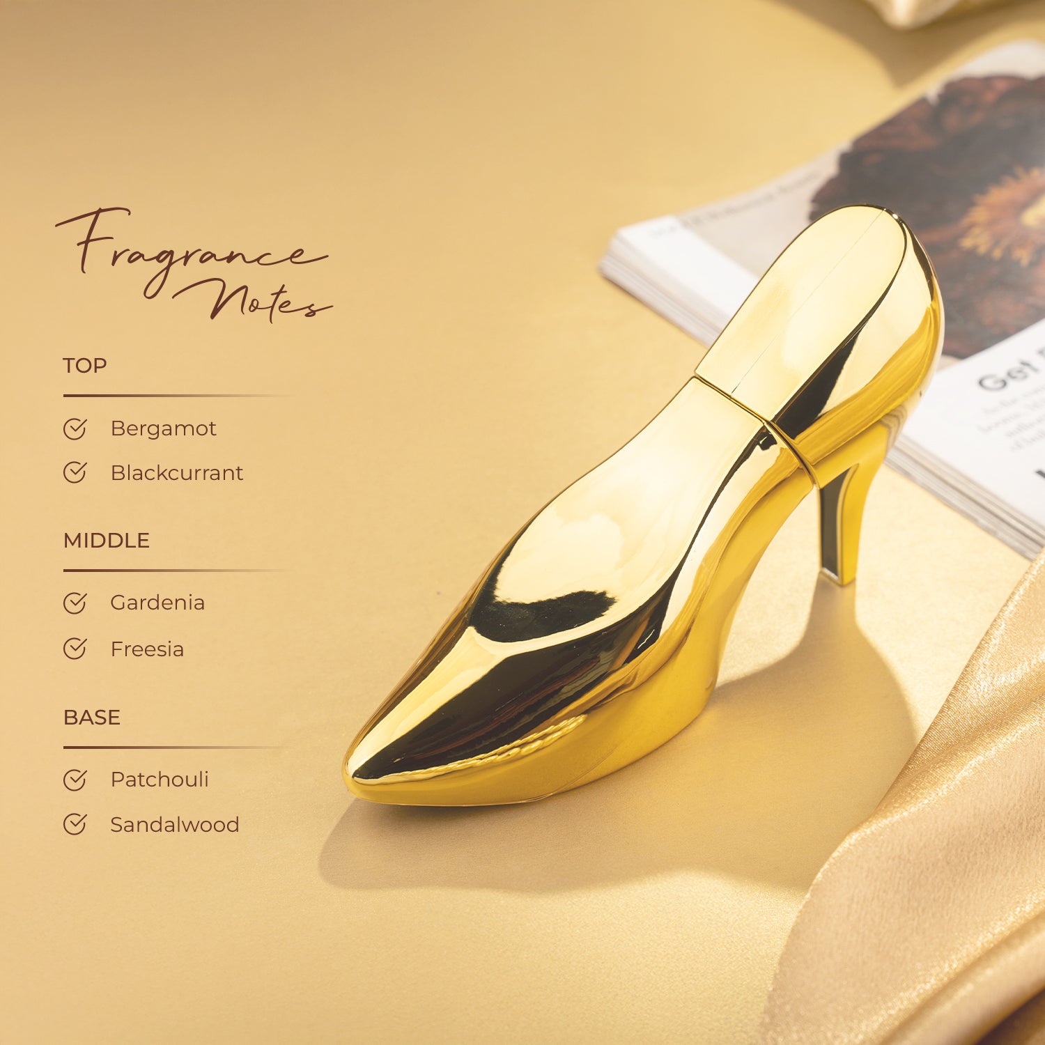 - Base:  Patchouli, Sandalwood