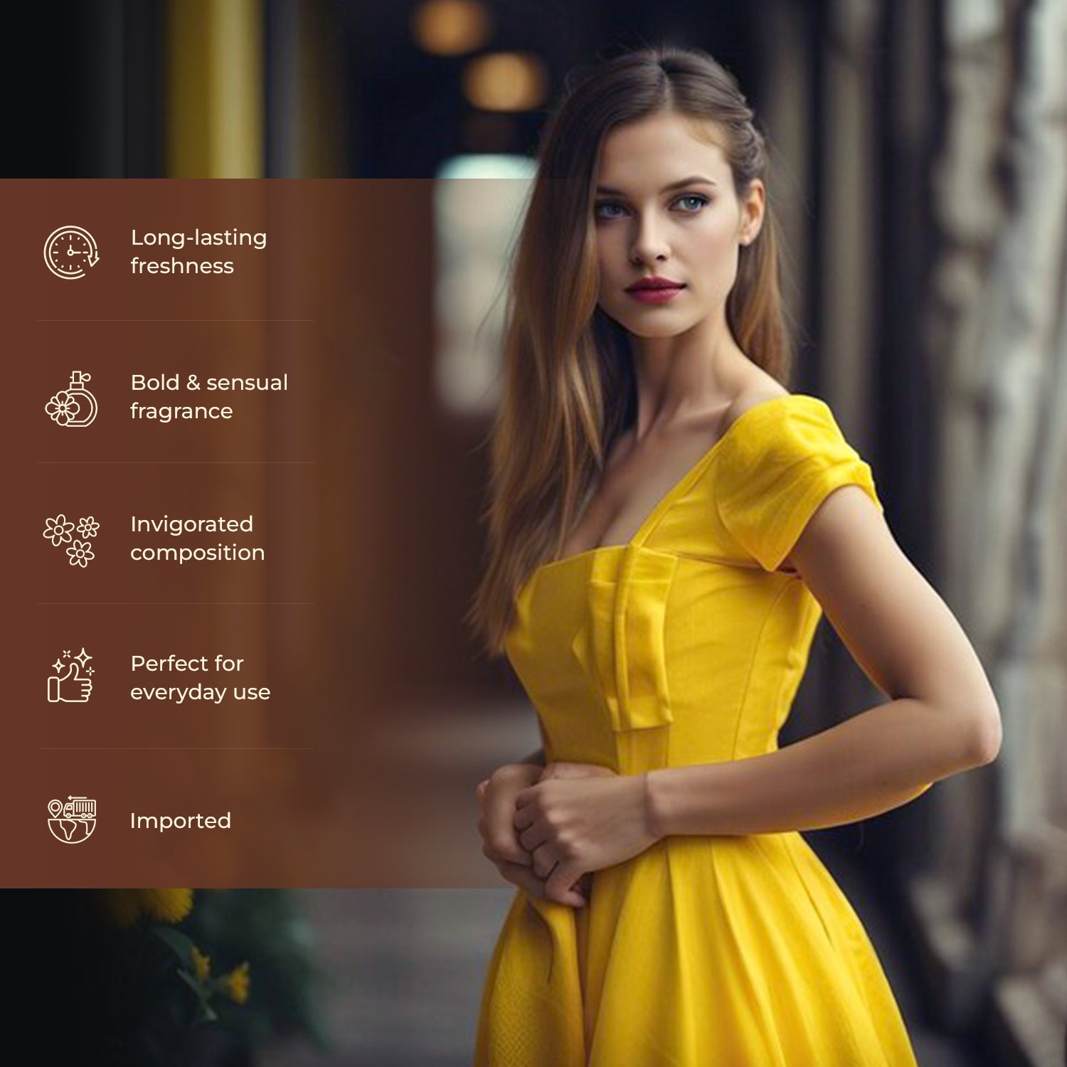 A delicate fragrance with floral and fruity undertones, this feminine scent features notes of Bergamot, Freesia, and Jasmine. It offers a versatile and captivating essence that makes it an ideal choice for evening events.