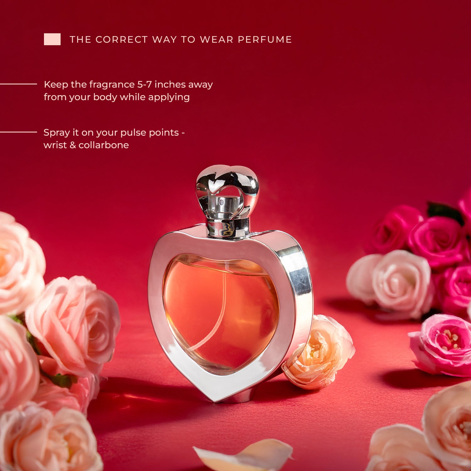 A long-lasting fresh and floral fragrance to keep you fresh and happy all day. This daily wear feminine scent has rich and enchanting notes of Grassland, white peonies, Rose & jasmine to create an unforgettable moment.