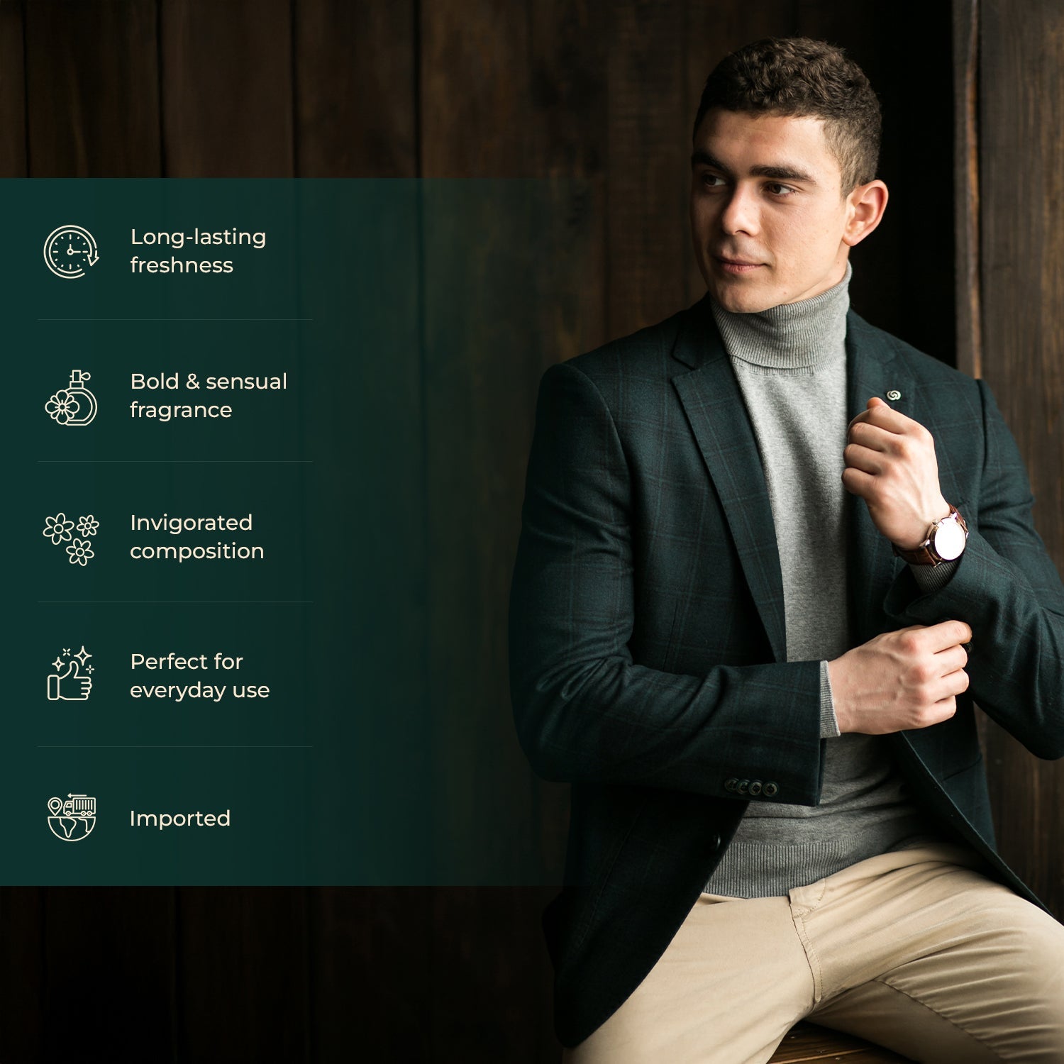 - Base: Amber, Leather, Woody Notes