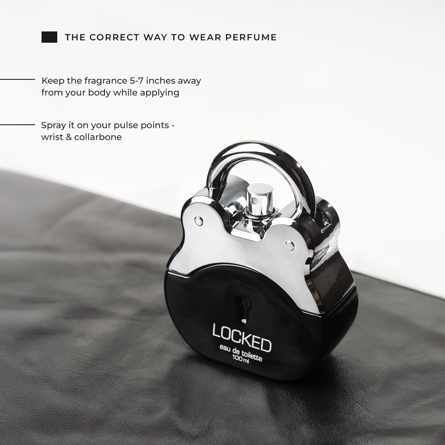 - Keep the fragrance 5-7 inches away from your body while applying.
